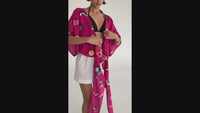 This fuchsia, retro-inspired print combining elements from “My Little Pony”, mixed tapes, blanco correctors etc., undoubtfully evokes a nostalgic and playful feeling. The charm of the ’80s and ’90s is clearly depicted in this intense and bright pink print that brings vibrancy and energy to your summer wardrobe. Combine two pieces together in a total “Retrofeelia” print look to create a bold and eye-catching image, perfect for the beach setting!