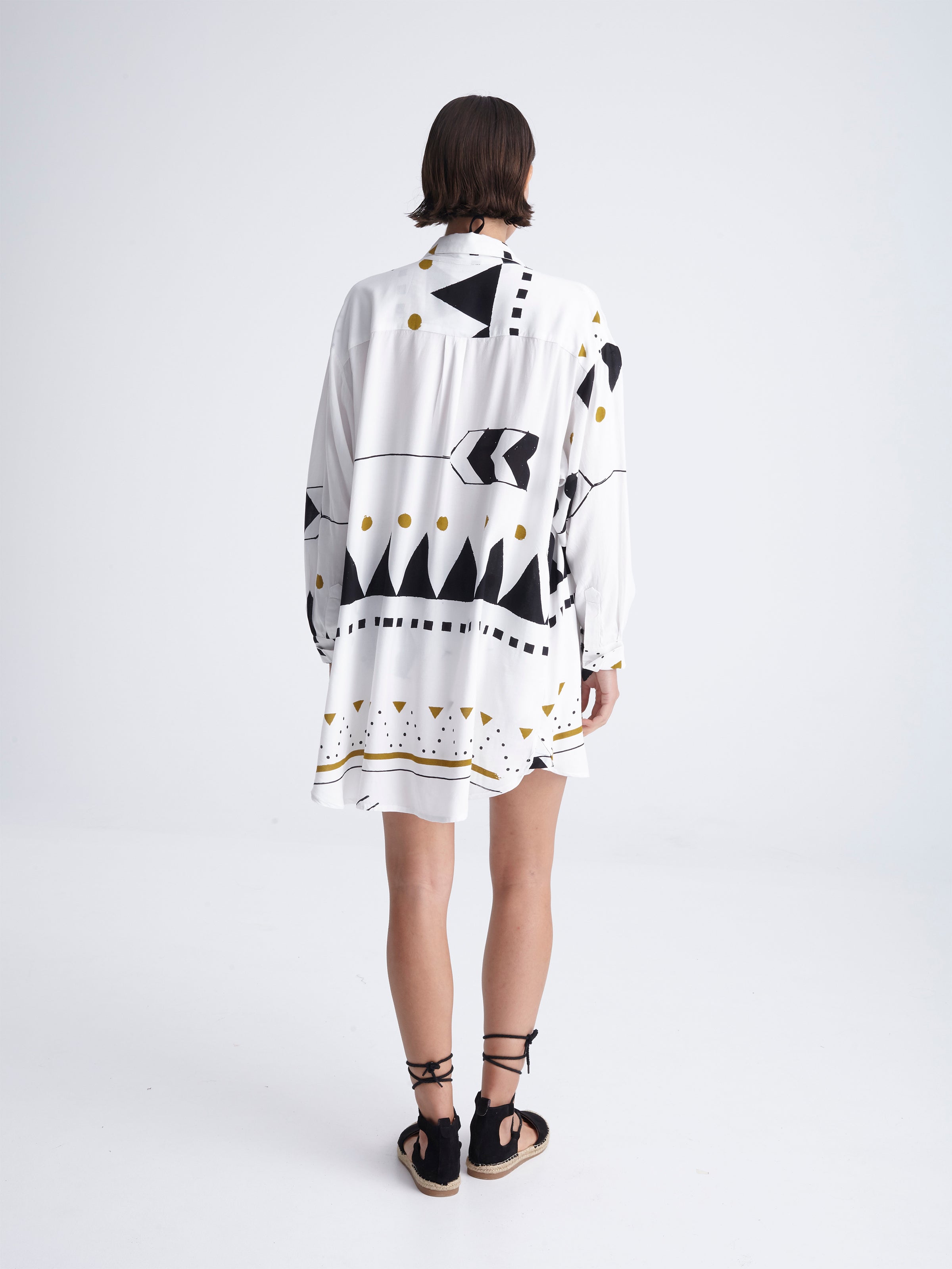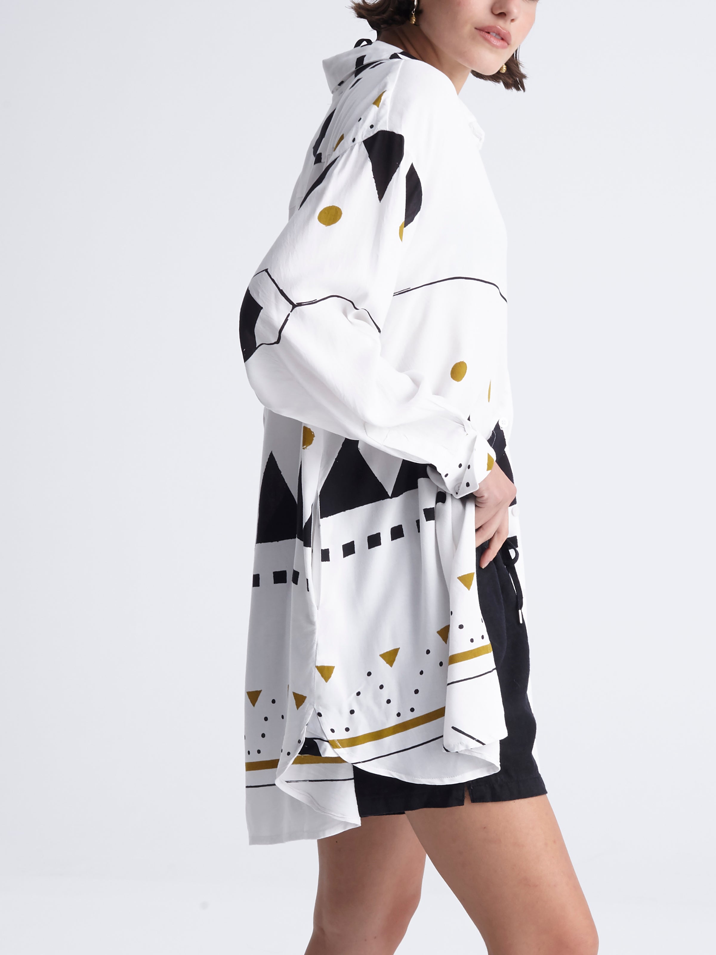 Imagine a flowing, oversized shirt crafted from our lightweight viscose fabric, with a relaxed fit that drapes effortlessly on any body type. Its length is generous, extending just over the knees, allowing it to double as a dress when paired with a pair of shorts or worn alone for a casual, gender-neutral look. The shirt also features a pair of side pockets that makes it even more cool to wear.