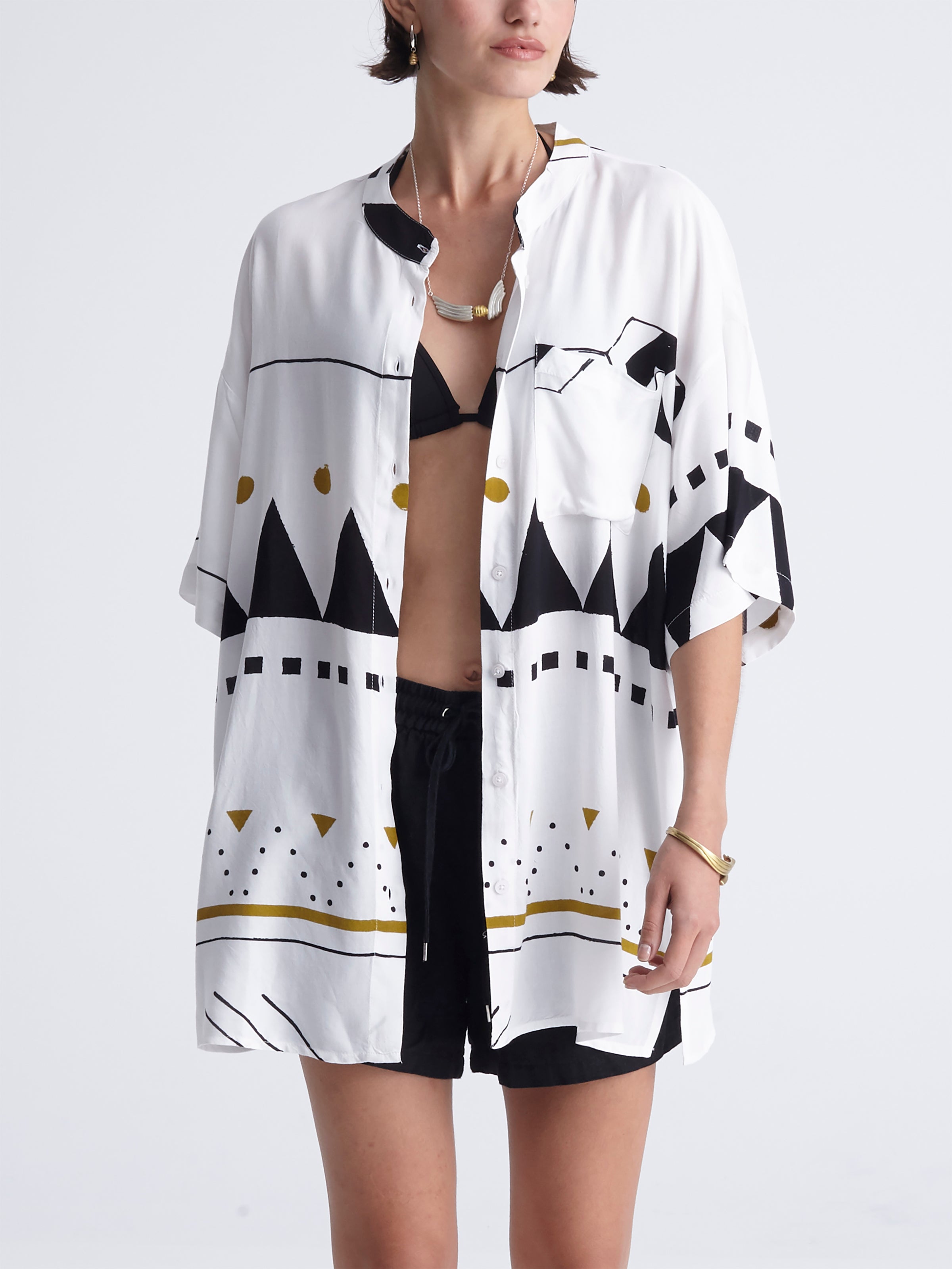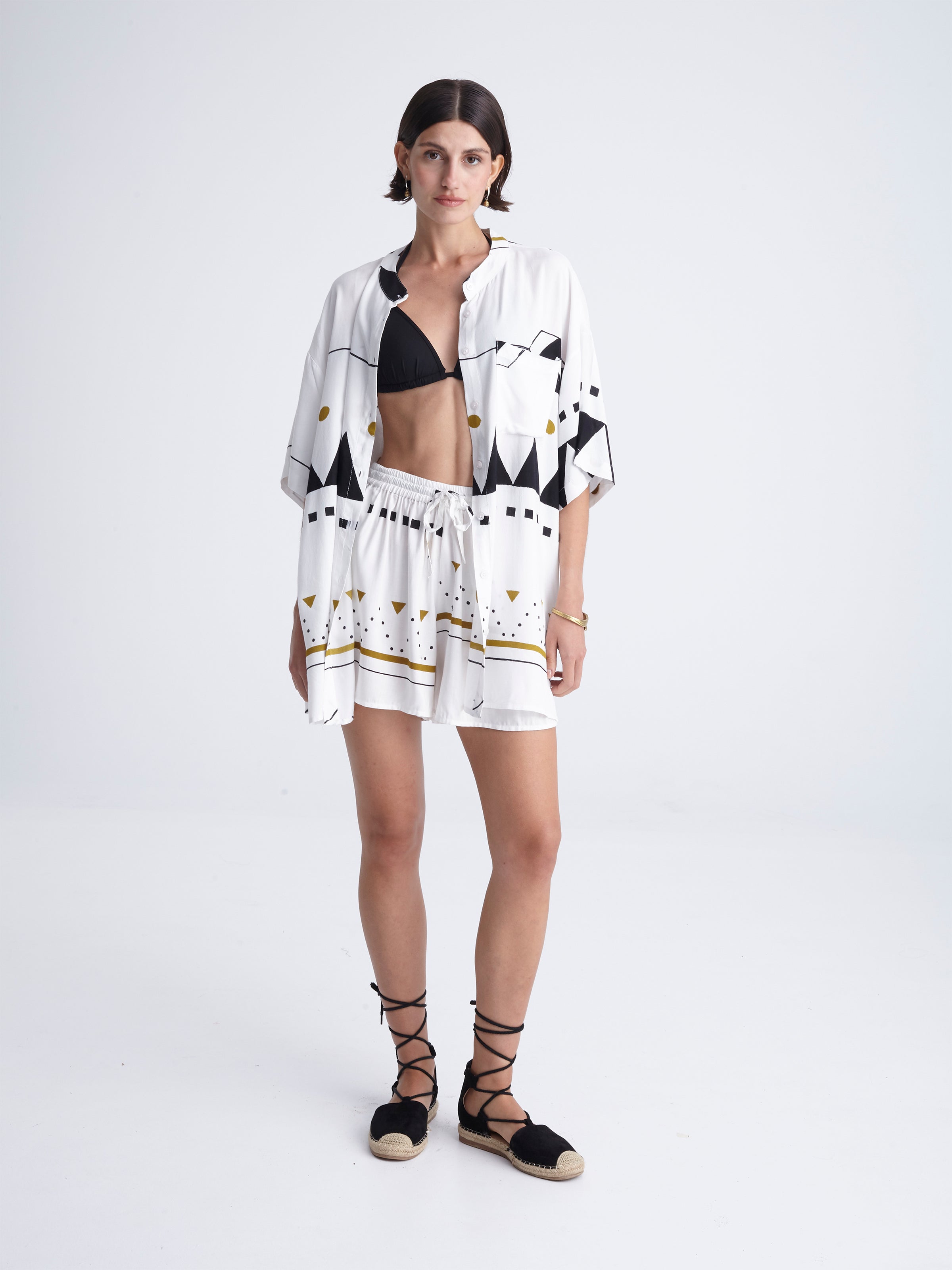 Let alone that its style would match perfectly a woman’s garderobe! So, feel free to style it with a pair of shorts of the same print, or even wear it as a dress itself by tying a belt around your waist!