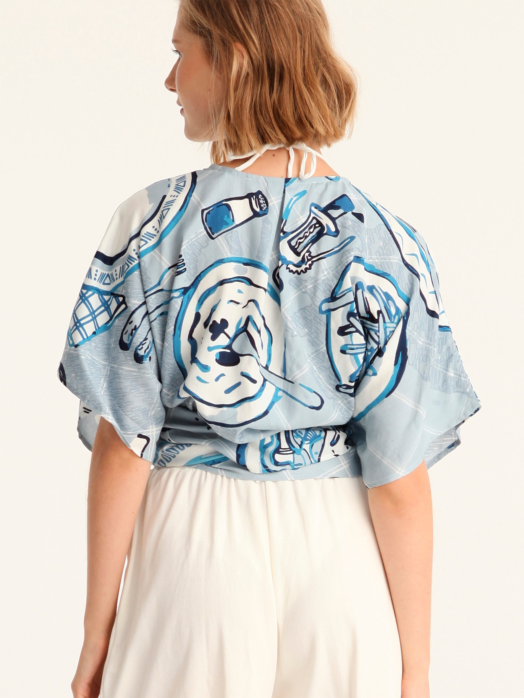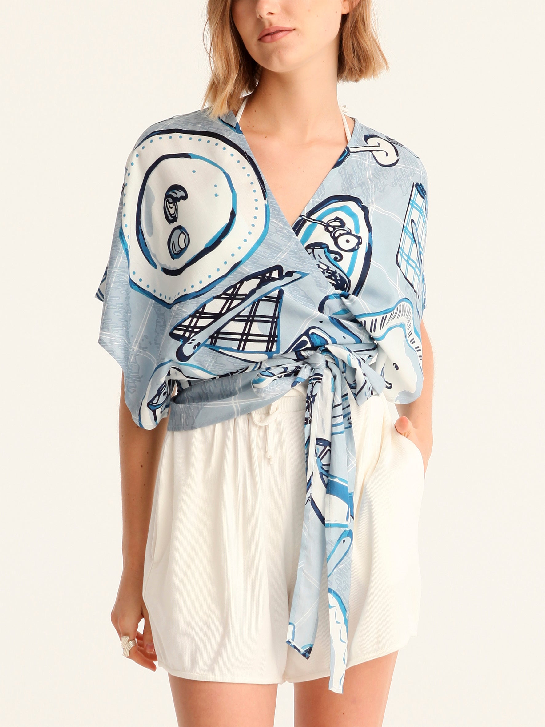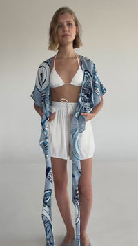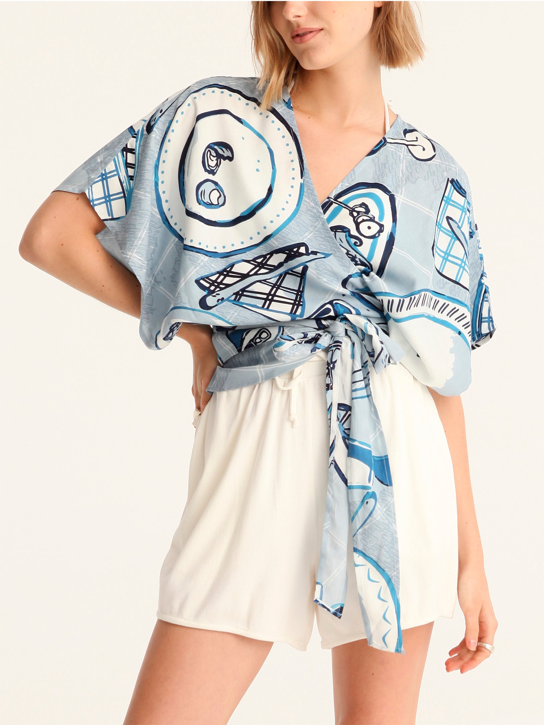 Visualize a chic wrap kimono top designed to gracefully envelop your figure. This top boasts a unique feature, it wraps around your waist not once, but twice, creating a secure and flattering fit. Crafted with our lightweight fabric, it drapes elegantly, accentuating your curves while providing a comfortable and breathable feel. The wrap-style closure allows for easy adjustment, enabling you to customize the fit to your liking. With its versatile design, this wrap kimono top effortlessly transitions from day to night, making it a versatile and stylish addition to your wardrobe. Match it perfectly with our wrap skirt or buggy pants design.