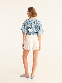 A love letter to the Greek summer lunch, "Bon Appetit" is a hand-drawn, life-sized illustration turned textile print that brings the soulful simplicity of a seaside meal to life. Rendered in soft, sun-washed tones of ciel blue, the print evokes the calming presence of the Aegean Sea, setting the perfect backdrop for a table full of shared joy and flavor.
