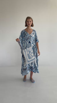 Whether you're lounging by the pool or strolling along the beach, this caftan exudes relaxed sophistication and timeless appeal—an effortless statement piece for sun-drenched days.