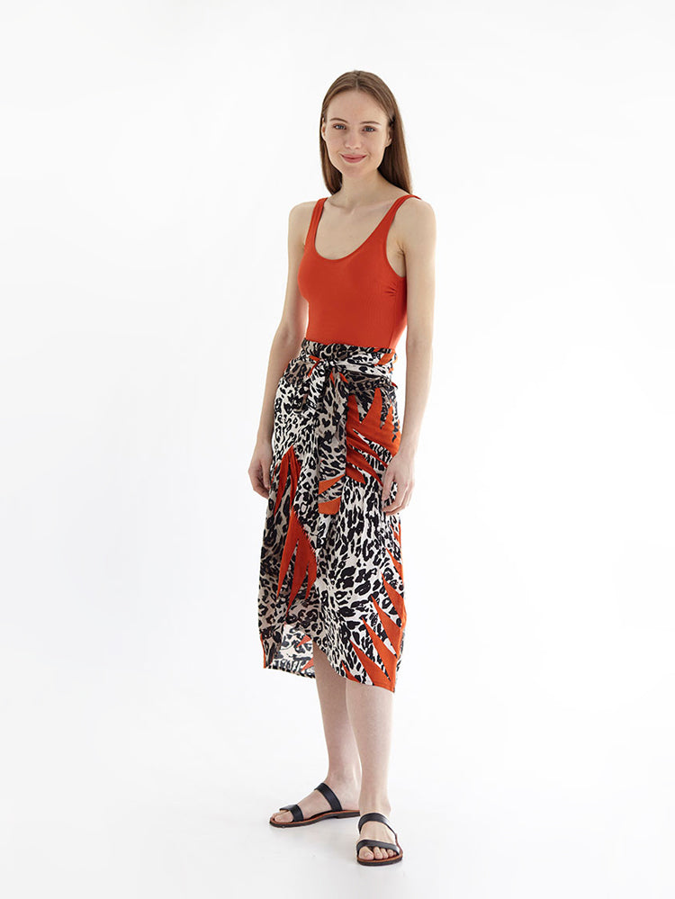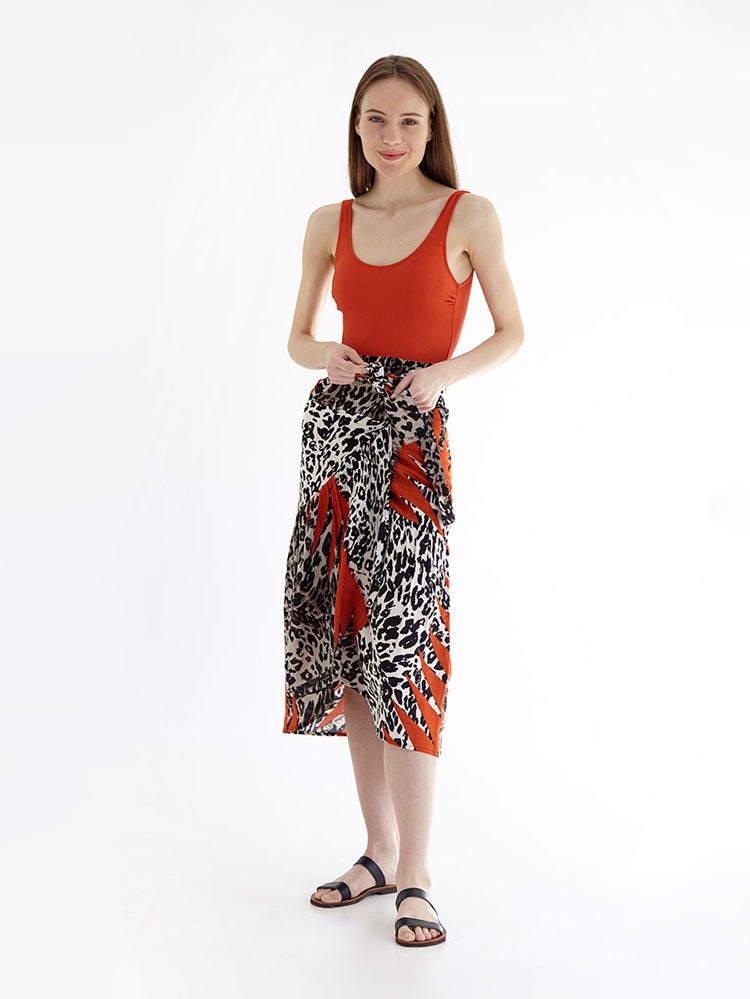 Beach yourself in this eye-catching animal print style! Meet our brand new wrap skirt inspiration that fits and suits many different bodytypes! You can wrap it around your waist, or below it, and tie it in a nice bow in your front side. It's main body has a self fabric lining, in order to avoid any transparency. The belt parts are doubled in order to be more solid, and the circular bottom part of the skirt is light and floating. Its midi length makes it easy to be worn barefoot or with a pair of flip flops. However, this skirt design can perfectly be worn off the beach as well, since it consists a minimal and really stylish piece you can have in your summer wardrobe. It matches really nice with a plain black cropped top, and a pair of black sandals, not to mention that it would make a great combo wearing it with our "Cheetah" printed cropped shirt.