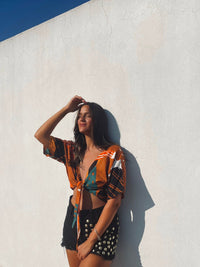 Looking for a top to match your maxi skirt or your wide leg culotte, here it is! Meet our brand-new tie front top that will take your beachwear from basic to stylish! This tie front crop top comes in all of our new collection all-over prints for a dreamy on-and-off the beach, day-to-night summer look. Totally loving the tie up trend for this new season.